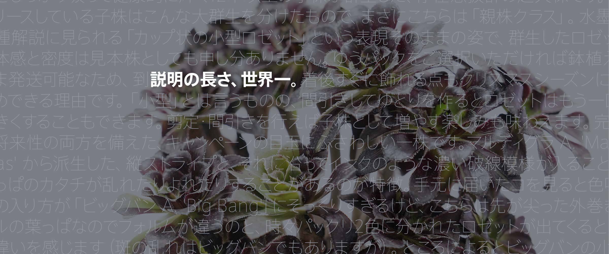 PUKUBOOK SUCCULENTS は、個人が趣味でやっている多肉植物図鑑サイトの運営資金を調達するために個人的なコレクションや、見本写真撮影、育て方の研究などのために集めた多肉植物苗を販売するショップです。売上のすべては、新しいコレクション株を探したり、それをネタに記事を拡充したり、単にサーバー費用にと、PUKUBOOKの制作費に当てさせていただきます。