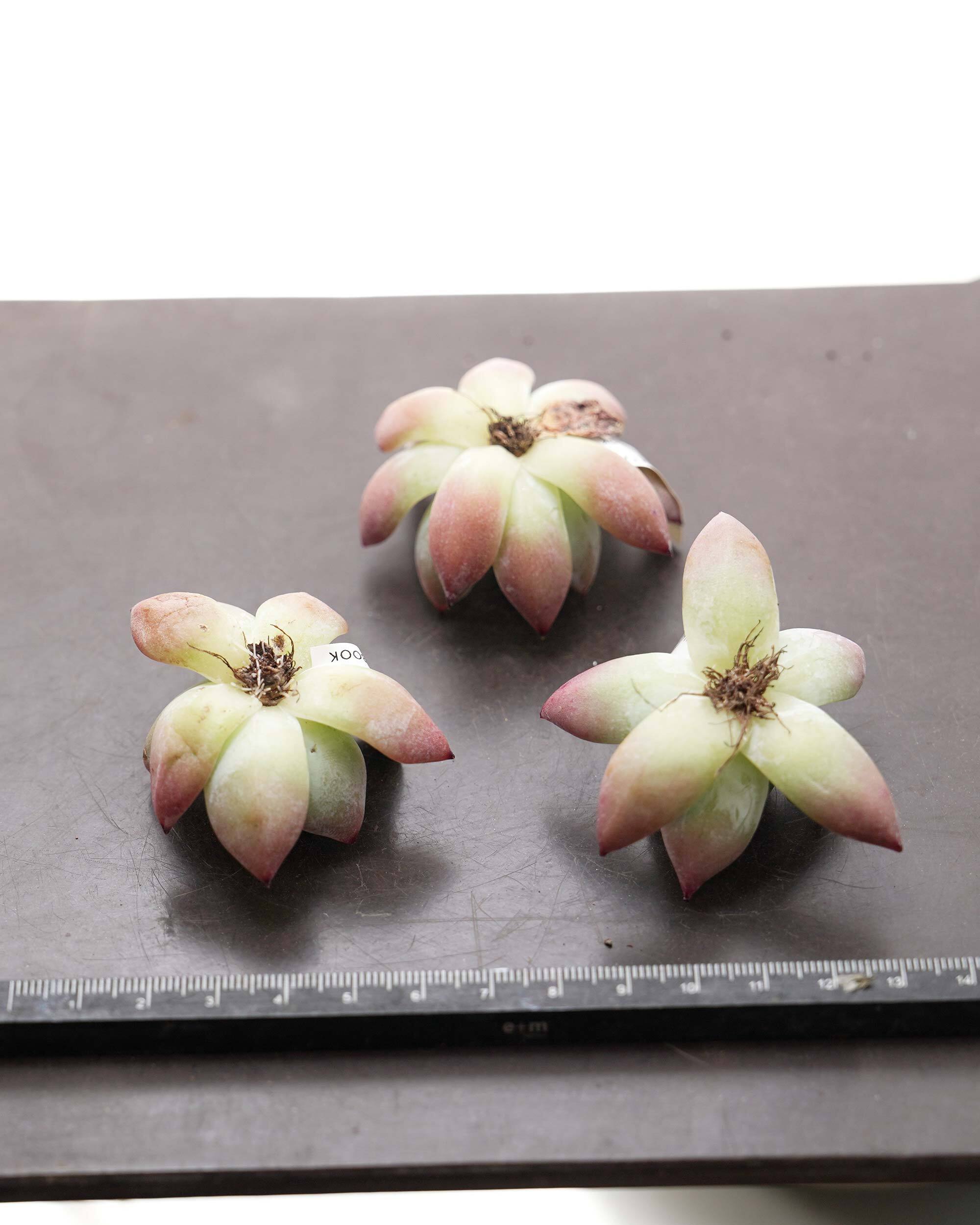 ※カット苗です。未発根で、土はついていません。鉢は撮影用に置いているだけで基本的に鉢植え管理はしていません。発根管理についてはPUKUBOOKコラムを参考にしていただければと思います。