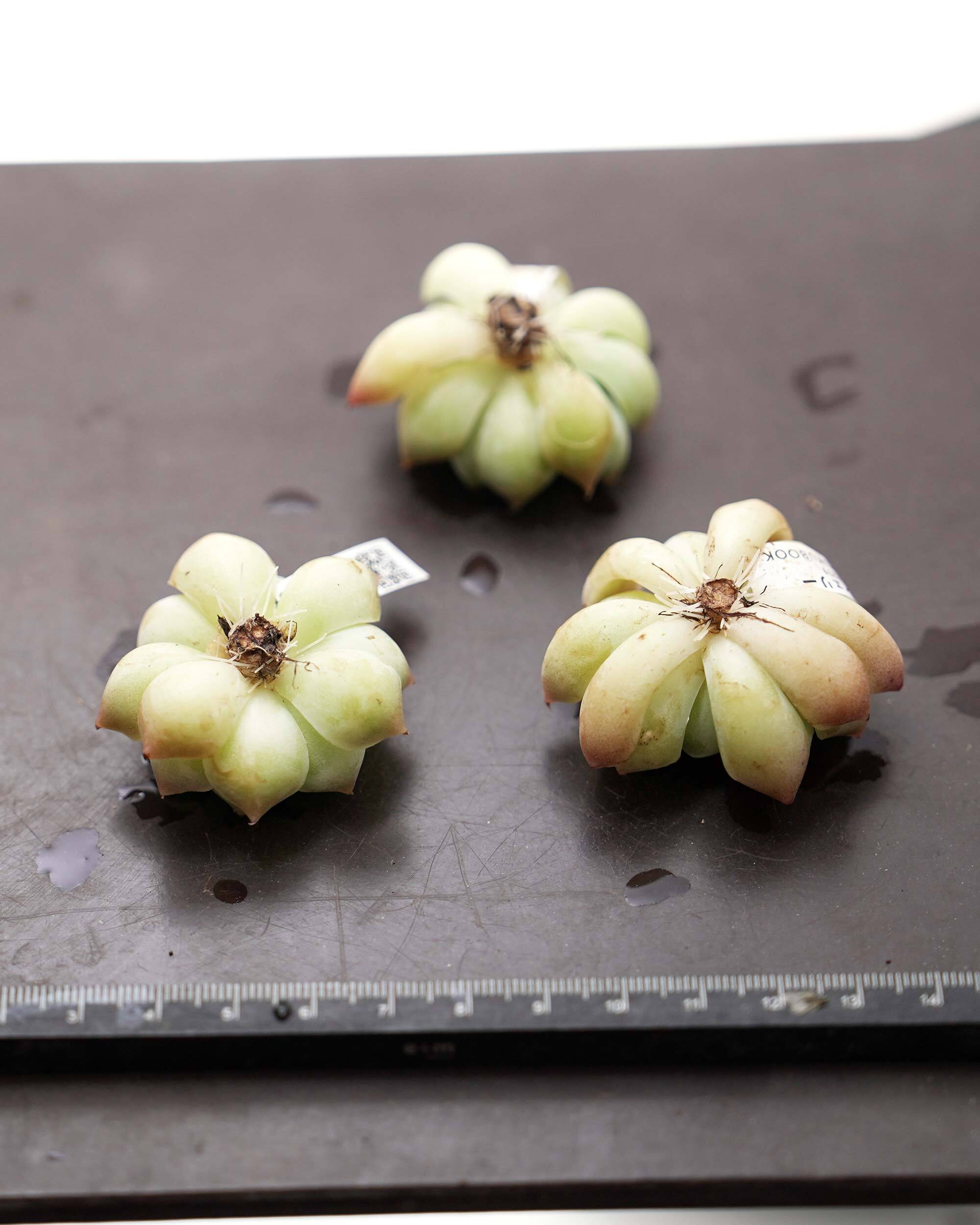 ※カット苗です。未発根で、土はついていません。鉢は撮影用に置いているだけで基本的に鉢植え管理はしていません。発根管理についてはPUKUBOOKコラムを参考にしていただければと思います。