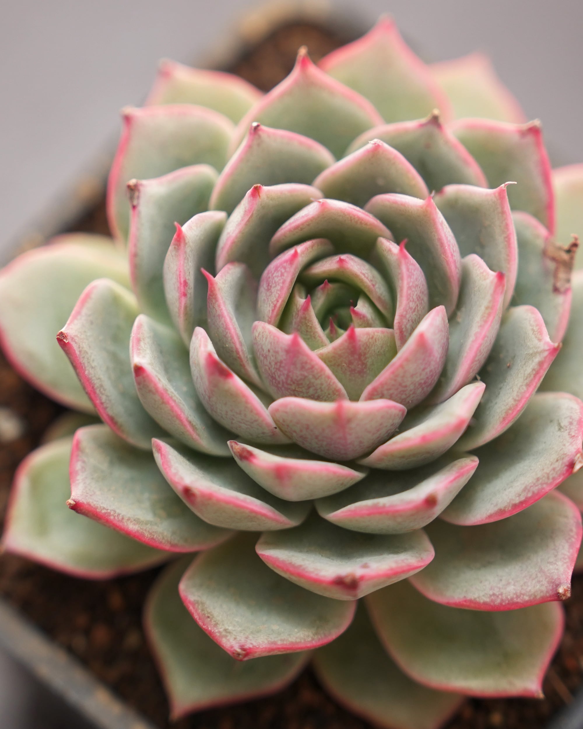名前は「リンゼアナ E. colorata 'Lindsayana'」に似ているけど、葉は薄くスムースでツヤ感があり、「大和美尼 E. 'Yamatobini'」のようにほんのりドット感のある赤みが指す様子はリンゼアナとは明確に違う顔。「ベンバディス E. 'Ben Badis'」にも似ているけど葉は長くロゼットは広がり気味でより優雅な印象。個性はよく出ていて完成度の高いハイブリッドだと思うけど、惜しいことに名前と出自がぐっちゃぐちゃ。たぶん「リンゼアナ ハイブリッド」がもともとの名前で、それが韓国で「リンジーハイナ 린지하이나」に訛ったんじゃないかという説が有力に思えますが1ミリも根拠はありません。「プリリンゼアナ E. 'Puli-Lindsayana'」に最もよく似ていてGeminiさんが勝手に同じものかもって主張してたけどまったく根拠が見つかりませんでした(画像検索する限り「プリ」はよりベンバディスに近く、こちらはより「リンゼアナ」に近い雰囲気)。