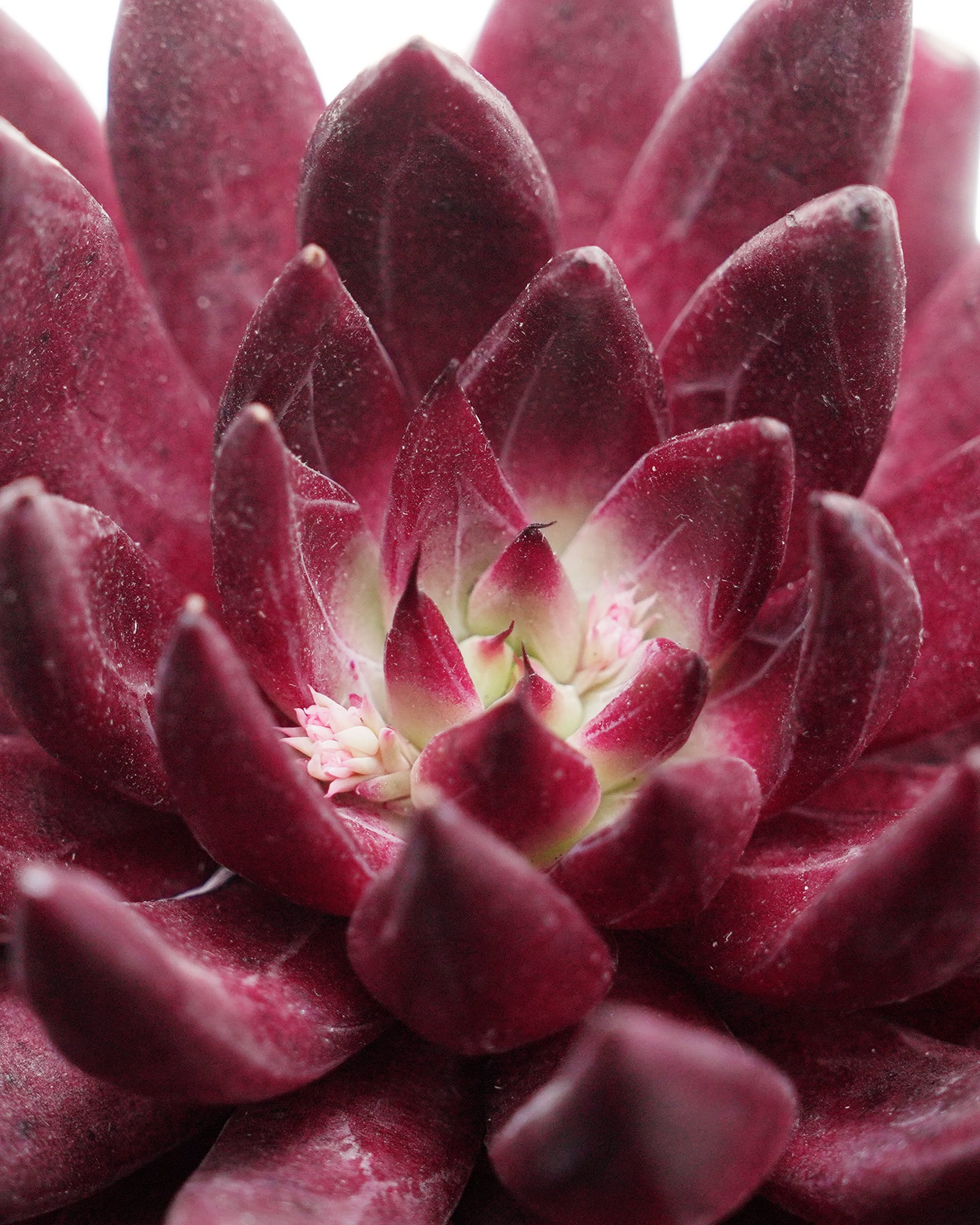 「悪魔のような魂」というダークなネーミングの通り、ツヤ感のある赤黒く染まった細い葉は地獄の底に生えるモンスターの爪のよう。内側は白いファセットラインが映え、悪魔的なビジュアルに凛々しさと言うか知性を感じ、悪魔と言ってもランクの高いなのかもしれません。赤系のアガボイデス系の代表種「ロメオルビン E. agavoides 'Romeo Rubin'」に似ていますが、こちらのほうが葉が明らかに細く、それでいうと「アンギキュラータ E. unguiculata」や「プシュケ E. 'Psyche'」に似ていて、名前も似ているから何かしら関係があるのかも。