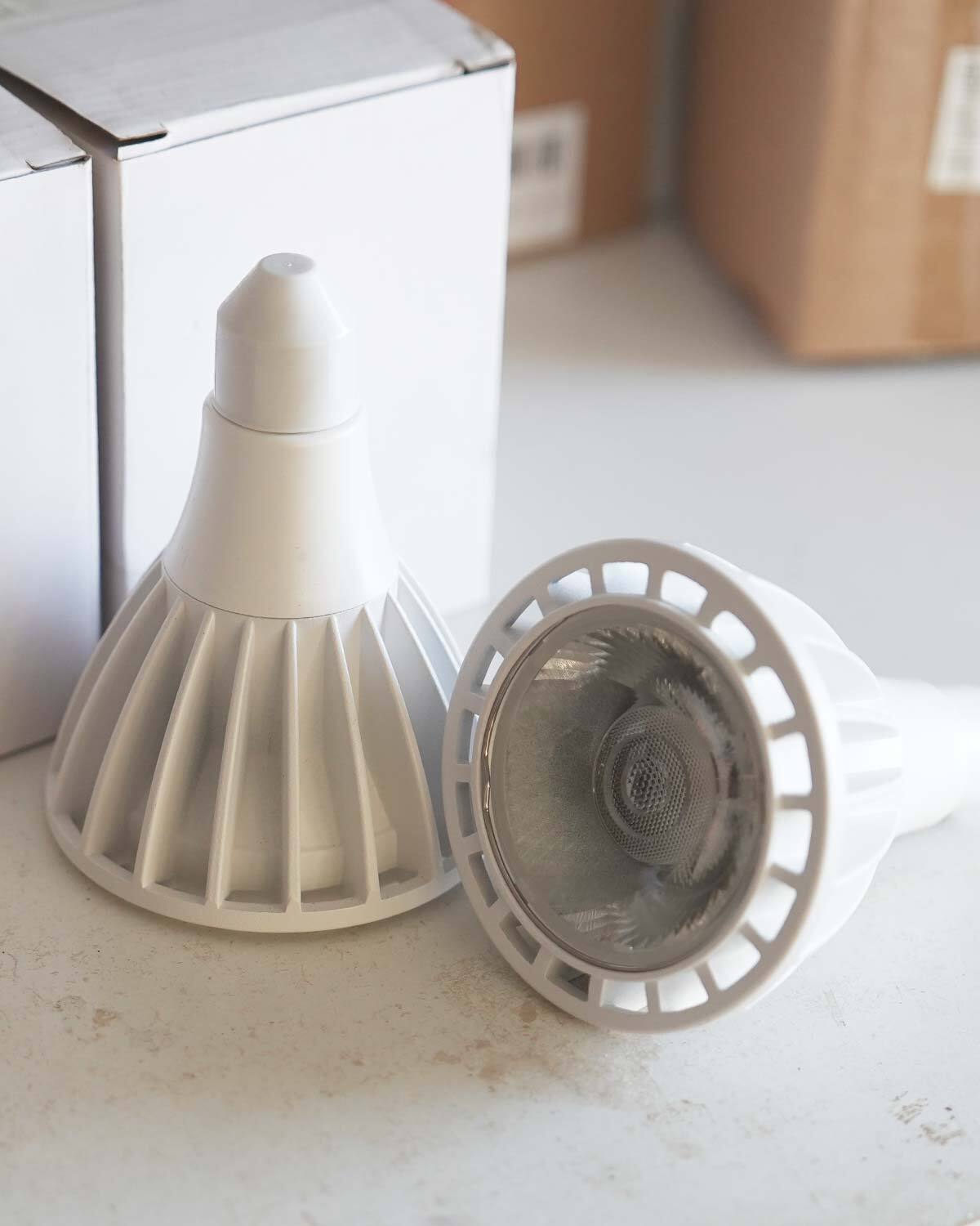 見たことないカタチ。すてきなデザインですね。暖色ですが電球色ほど赤くないので4000K程度でしょうか。落ち着く色なのでインテリアに良く使われますよね。……もしかして店長、これは自宅のインテリアに使うつもりで仕入れたんじゃないでしょうか。