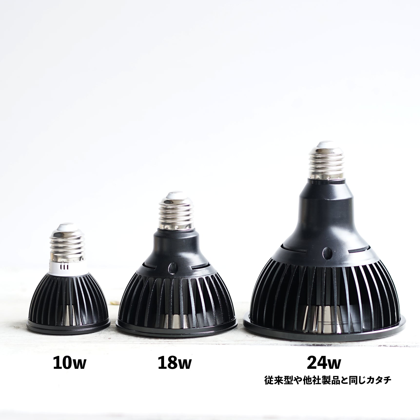 24Wモデルは、より広範囲に使用したい場合におすすめのモデル。大きな筐体は公称の照射角度が38°と広めで(16Wモデルは30°)より広い範囲に光を届けることができます。大型のアガベや大きな観葉植物、あるいはいくつかの苗を並べてすべてに光を当てたい場合などにご利用ください。