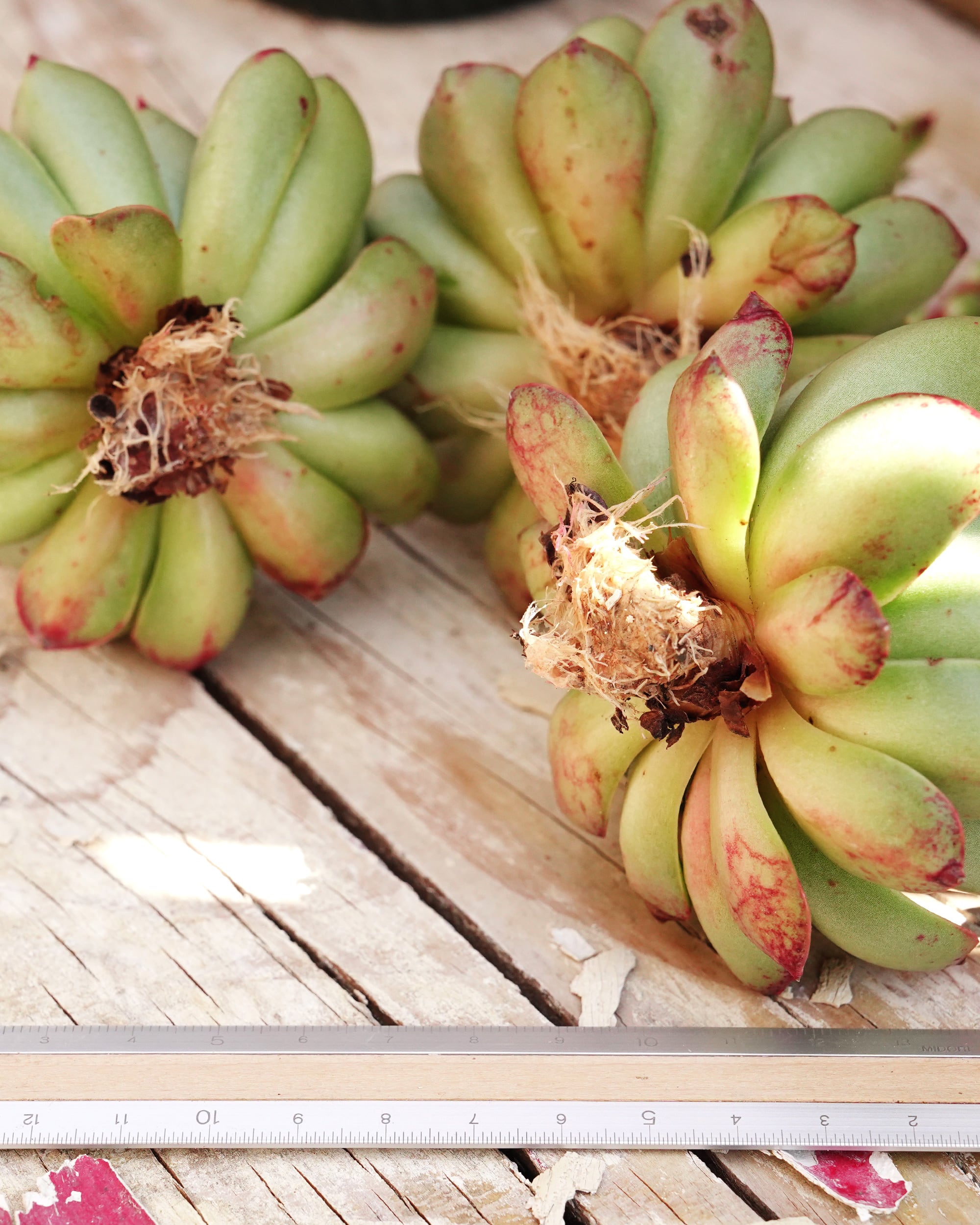 ※カット苗です。未発根で、土はついていません。鉢は撮影用に置いているだけで基本的に鉢植え管理はしていません。発根管理についてはPUKUBOOKコラムを参考にしていただければと思います。