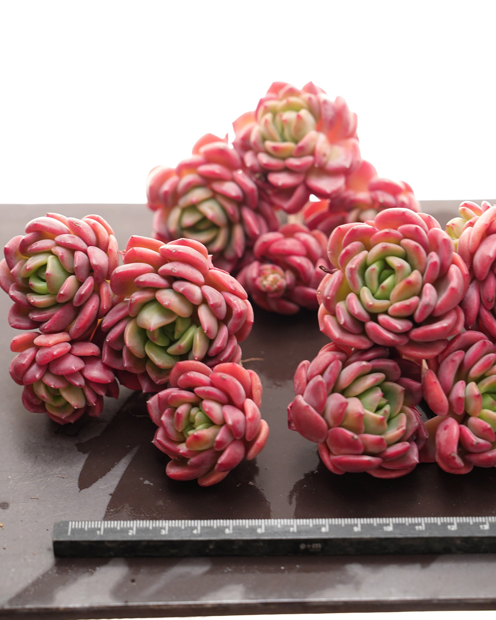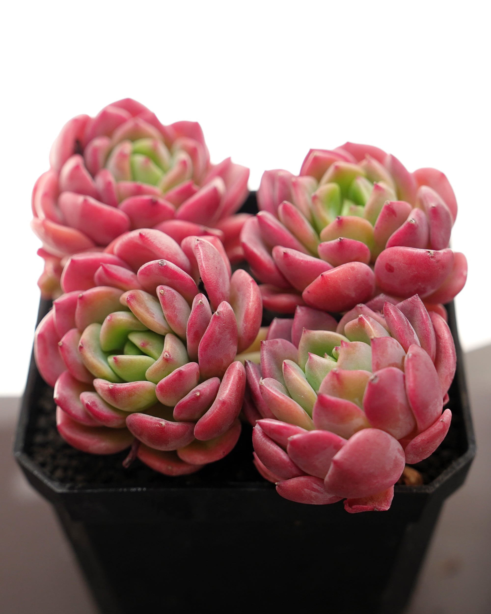 西澤です。シュワシュワとした炭酸を思わせる名前のニューフェイス。つやつやとしたレッドカラーが目を引く群生株です。この赤い葉っぱがぎゅっと集まっている姿、見ていてなんだか元気をもらえる可愛さですね♪ 基本的には4頭ほどの群生ですが、デリケートなため輸送中にバラけてしまうことがあります。その際はどうかご容赦ください。