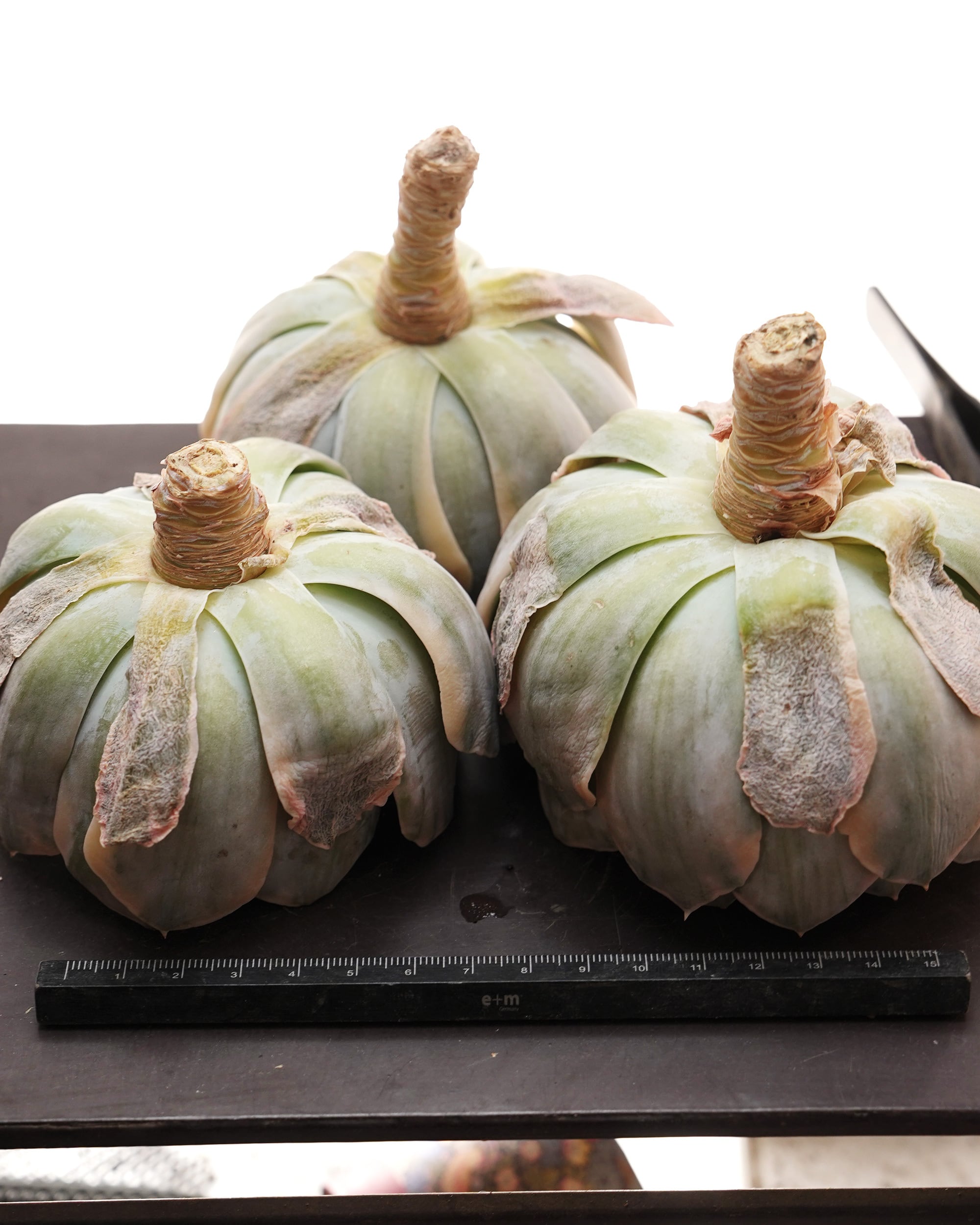 ※カット苗です。未発根で、土はついていません。鉢は撮影用に置いているだけで基本的に鉢植え管理はしていません。発根管理についてはPUKUBOOKコラムを参考にしていただければと思います。