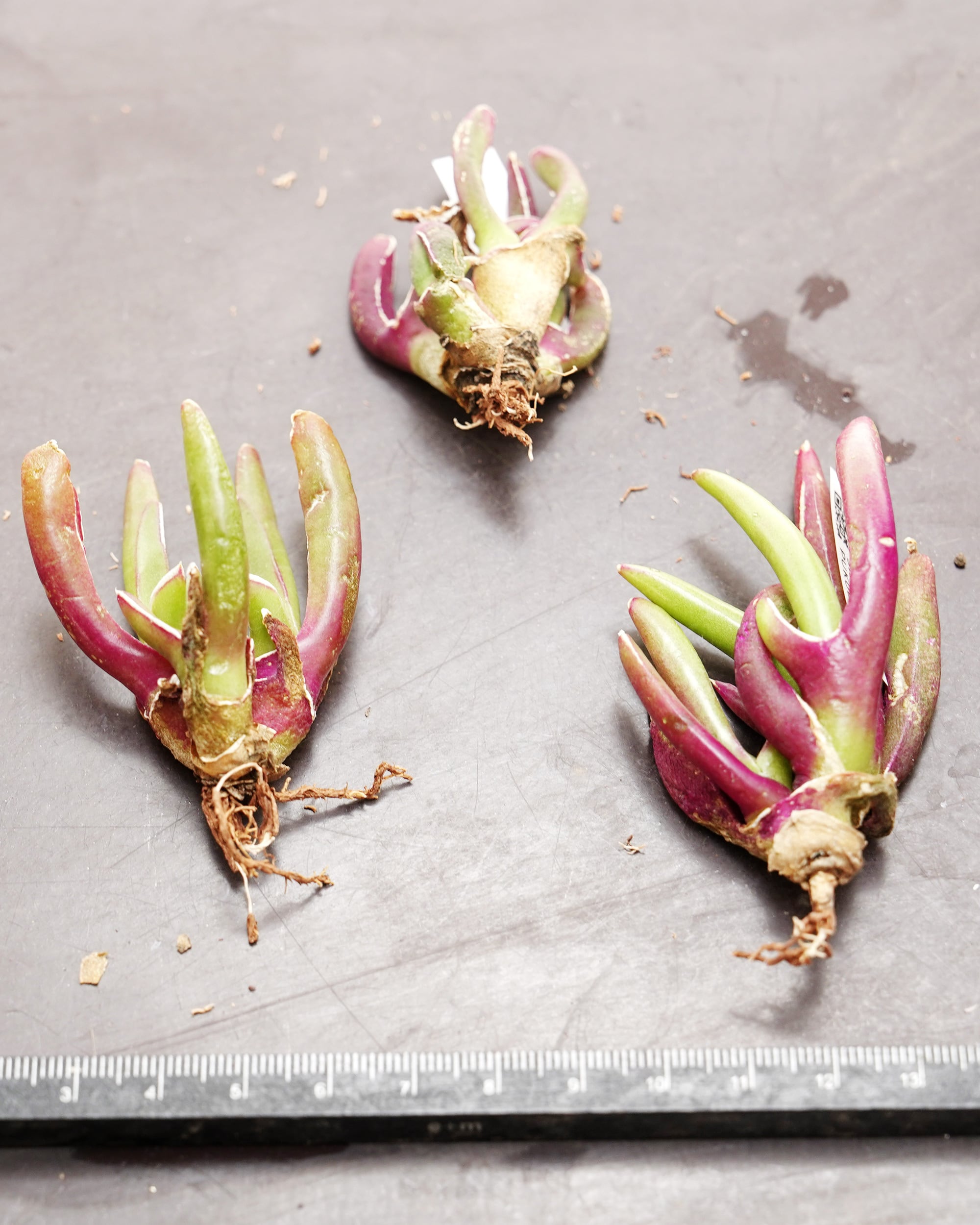 ※カット苗です。未発根で、土はついていません。鉢は撮影用に置いているだけで基本的に鉢植え管理はしていません。発根管理についてはPUKUBOOKコラムを参考にしていただければと思います。