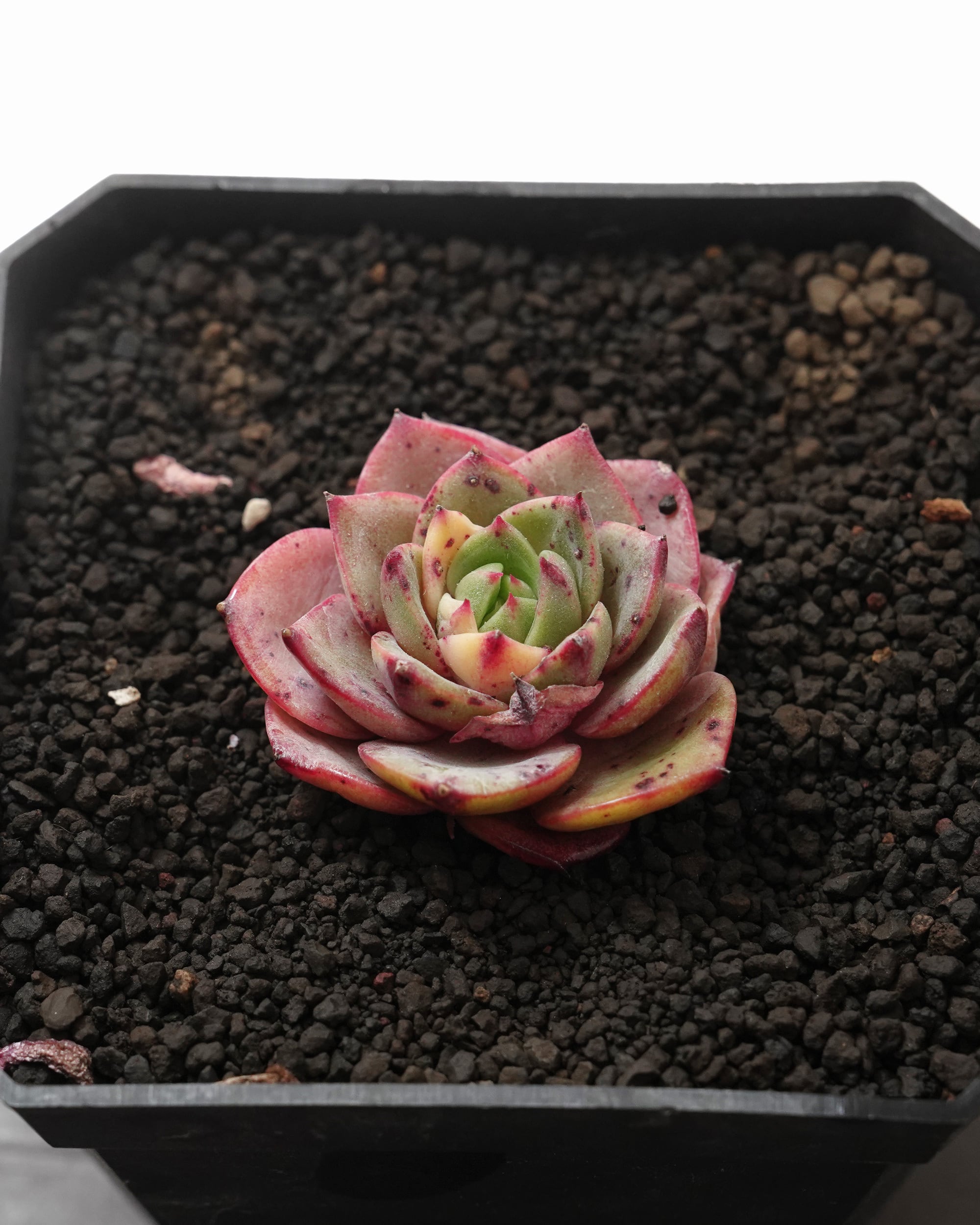 ※カット苗です。未発根で、土はついていません。鉢は撮影用に置いているだけで基本的に鉢植え管理はしていません。発根管理についてはPUKUBOOKコラムを参考にしていただければと思います。