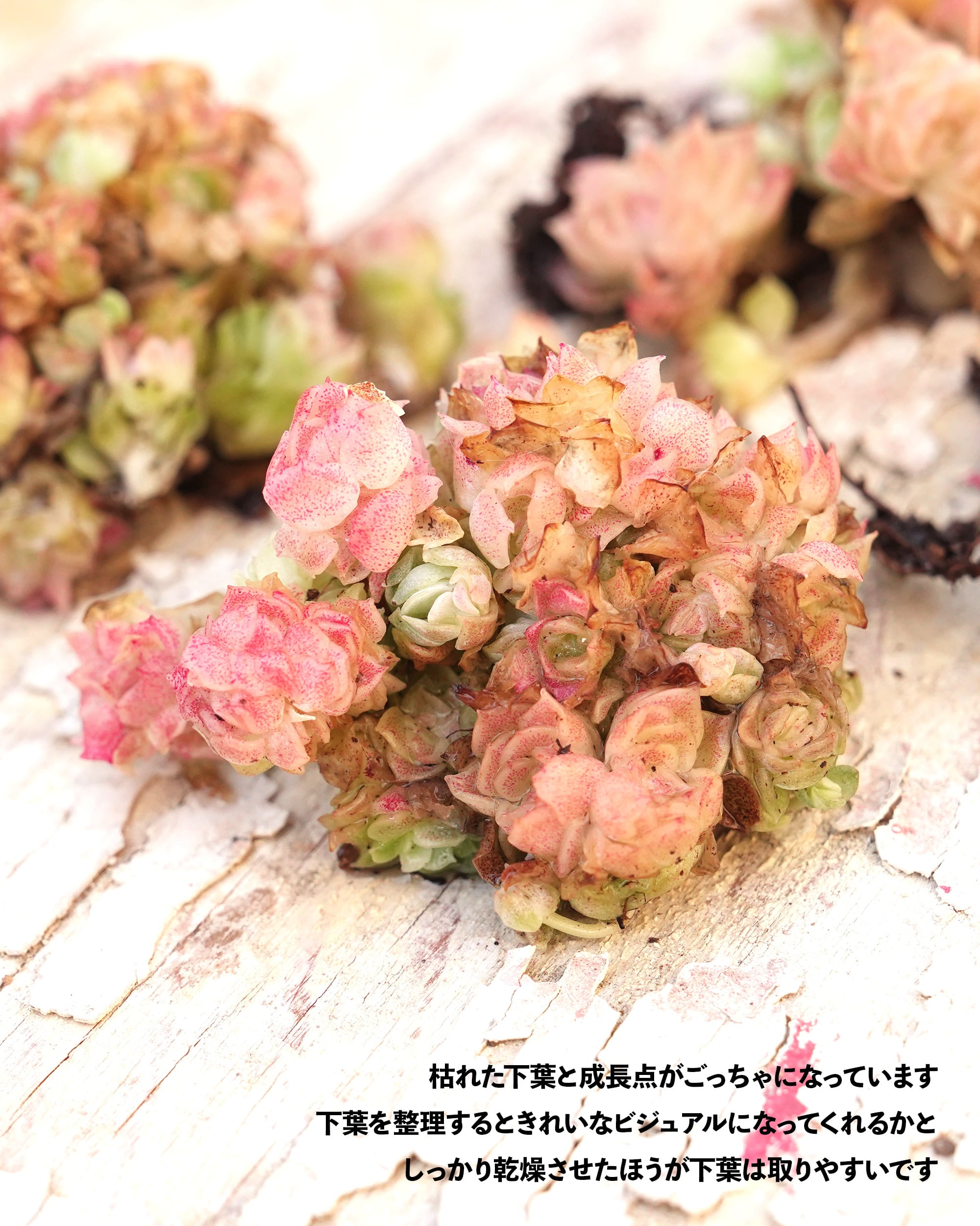 先日リリースした「コンキュバイン」ですが、あのサイズはあれだけしかご用意がなく、即完売してしまい申し訳ございません。ただ、少し小さめの群生株がまだまだあります。3~4cm。秘められたロゼットのかわいさも、ミニチュアみたいな群生株の魅力も十分感じていただけると思いますのでぜひご検討いただければと思います。