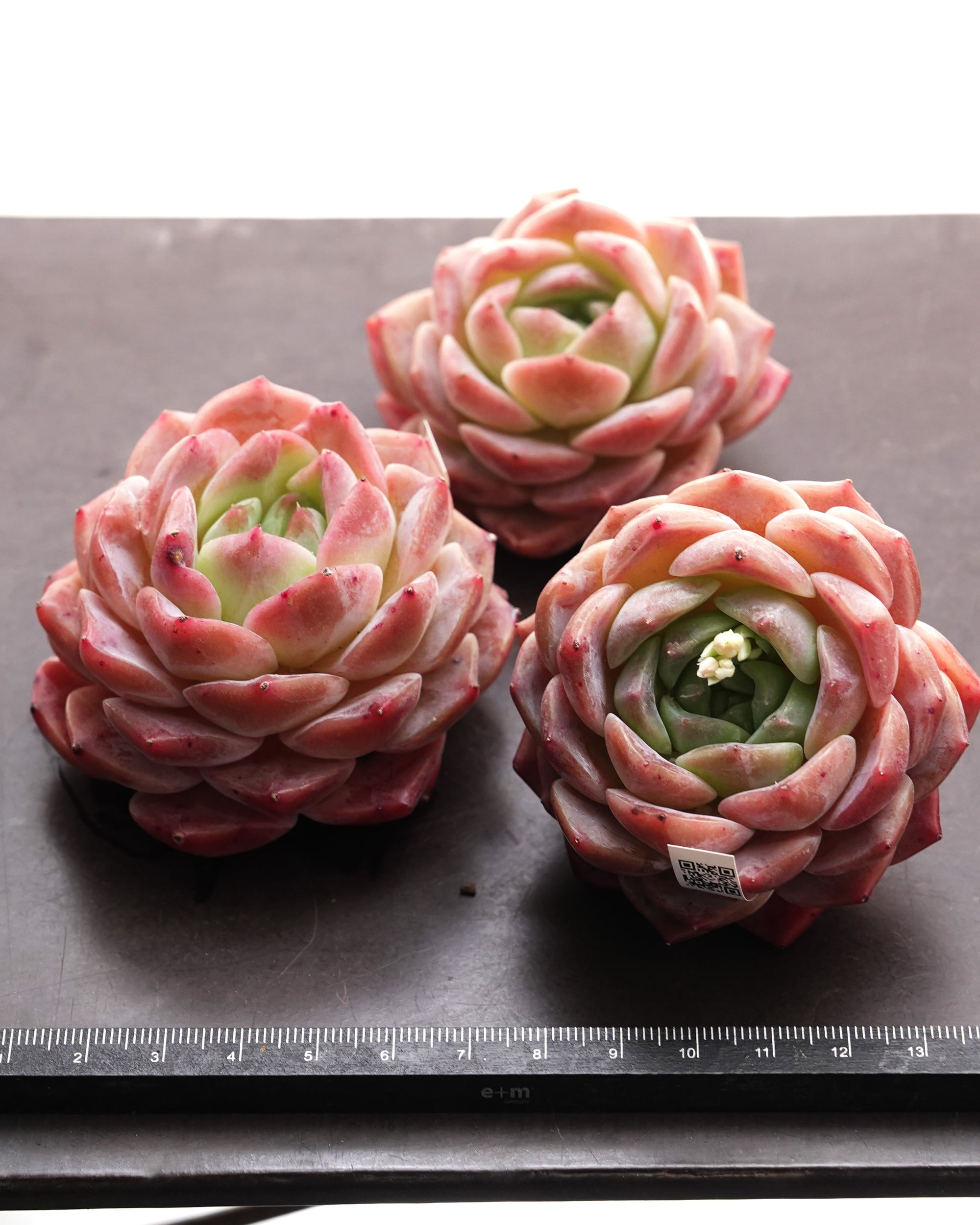 ピンクからパープルカラーに色づく、マットな質感の小さな葉っぱを密に纏うエレガンス系ハイブリッド。ぱっと見でルーマンリン E. 'Rumengling'、大きさが違うけど質感はリトルビューティ G. 'Little Beauty' にも似ています。ラウイ E. laui とヒアリナ E. elegans 'Hyalina' のハイブリッドらしく、韓国Airmagic産で2014年生まれ。「サラン(사랑)」は韓国語で「愛」を意味するド直球ネーム。