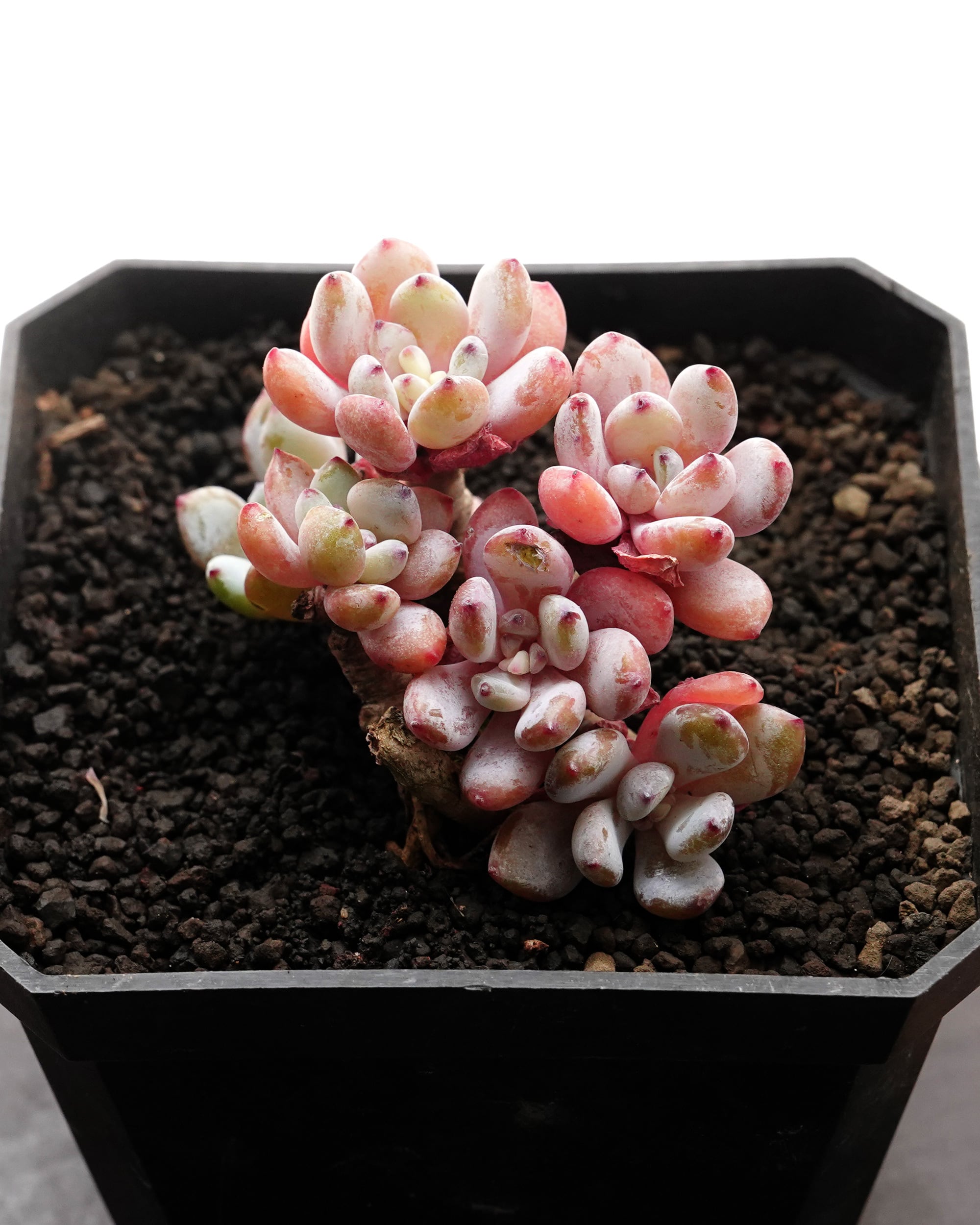正直に申し上げると、入荷時の状態があまり良くなかったので、今はまだ評価が難しいコです。ブルービーンより一回り大きくてダークな色合いは、きれいに群生させるとかっこよくなりそうなんですけど……。今回は「青田買い奨励価格」としてお出ししますので、このコと一緒に成長を楽しんでくれる方を募集します!