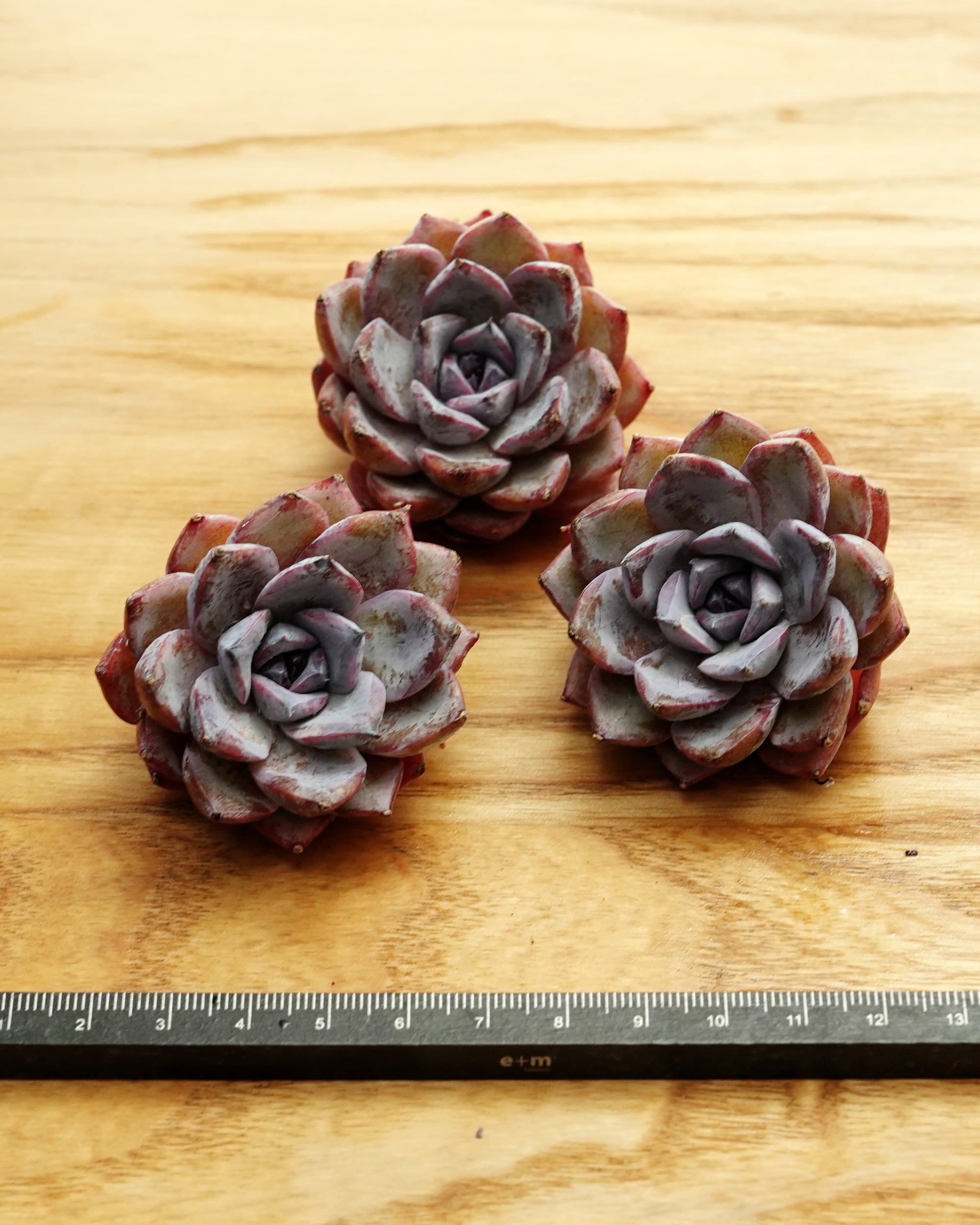 いわゆるダーク系、パープル系のニューフェイスだけど、ホワイトパウダーが厚く、シックな装い。「ブルーベリー E. 'Blueberry'」や「紫怡 E. 'Ziyi'」に似ているけど現状まだまだ子株なのでどのくらい違う表情になるか未明。